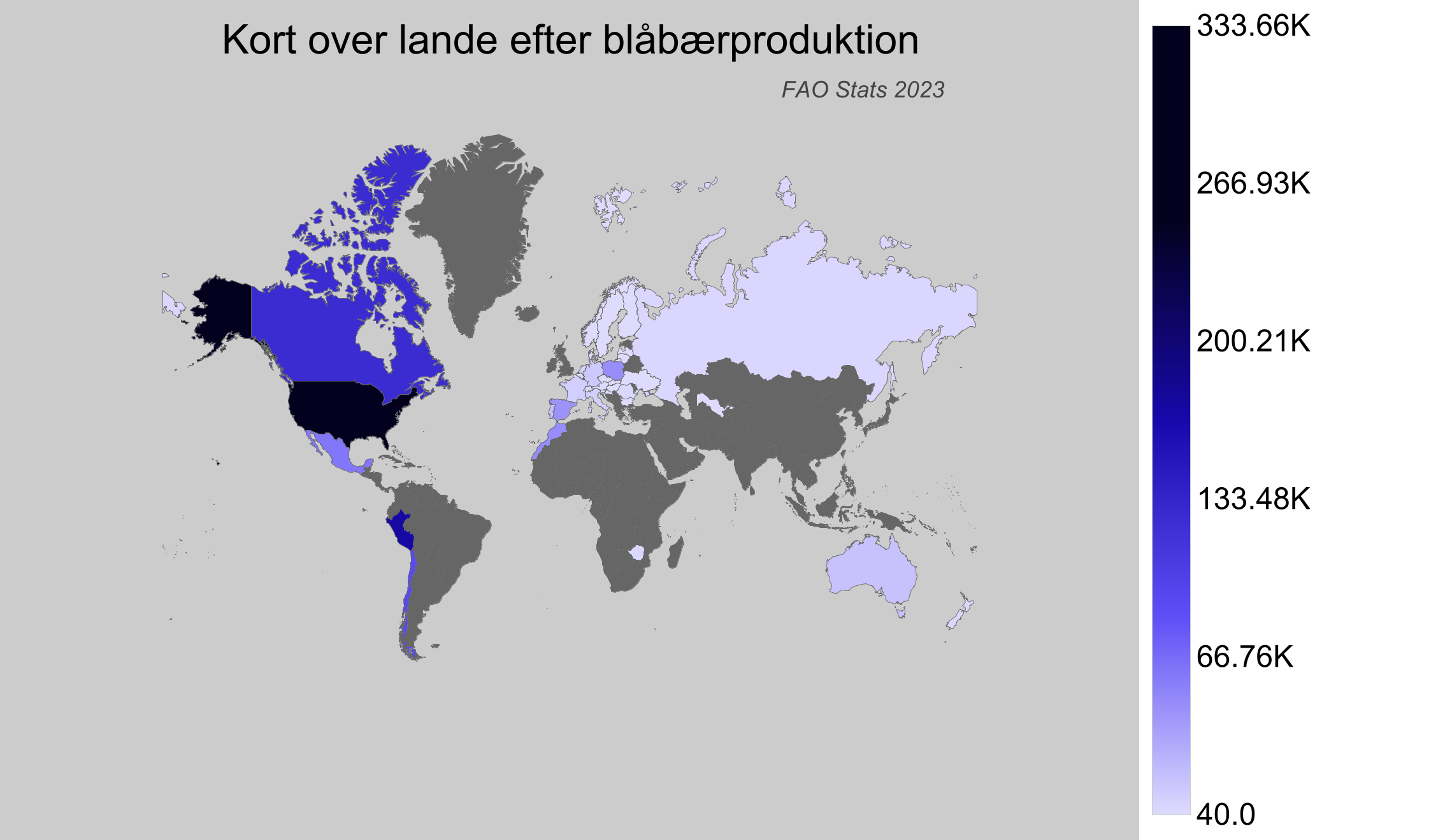 - USA fører an med en produktion på omkring 334 tusinde tons blåbær, hvilket gør dem til den største producent i verden.
