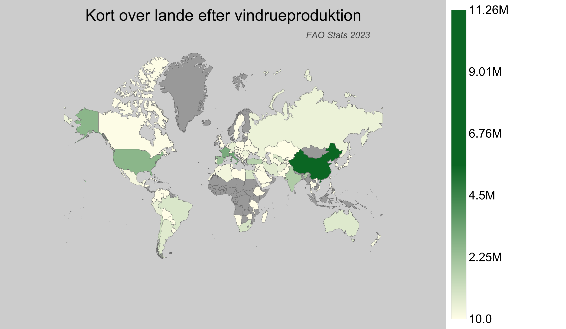 - Kina: Den største producent med omkring 11,3 millioner tons grape i 2023.