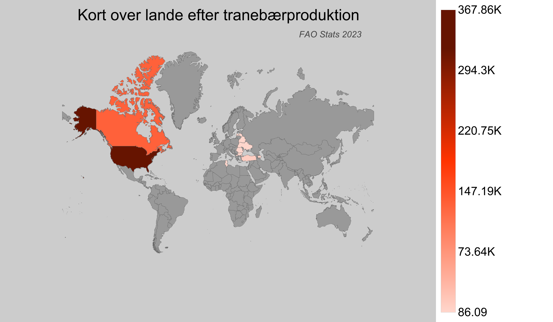 - USA: Omkring 368.000 tons, hvilket gør det til verdens største producent af tranebær.